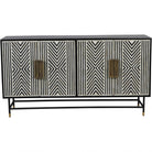 Delaney Sideboard Bone Inlay Black Wood Frame Antique Brass Handles 4 Door