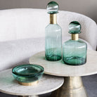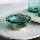 Introducing our versatile Jorum Collection Glass Bowl, a sophisticated addition to any space. Crafted with attention to detail, this decorative bowl features a sleek design with a wide base, made from teal-colored glass for a touch of luxury. Hand finished so textures and uneven bowl shape is part of each pieces unique charm.