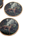 Bring a practical touch of pattern to your surface styling with this set of four coasters from the Lounging Leopard collection. Each round coaster features a vivid jungle illustration framed by a painted antique gold-effect rim, with a smooth top that’s easy to wipe clean. Designed to complement the matching tray set, these coasters are a decorative and functional addition, ideal for protecting tabletops from heat and moisture while tying your scheme together.
