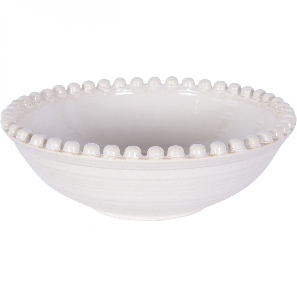 Introducing our Mediterranean Cream Reactive Glaze Ceramic Bowl featuring a creamy hue with delicate round ceramic beading. The enchanting reactive glazing infuses subtle champagne tones into the beads, adding understated luxury.