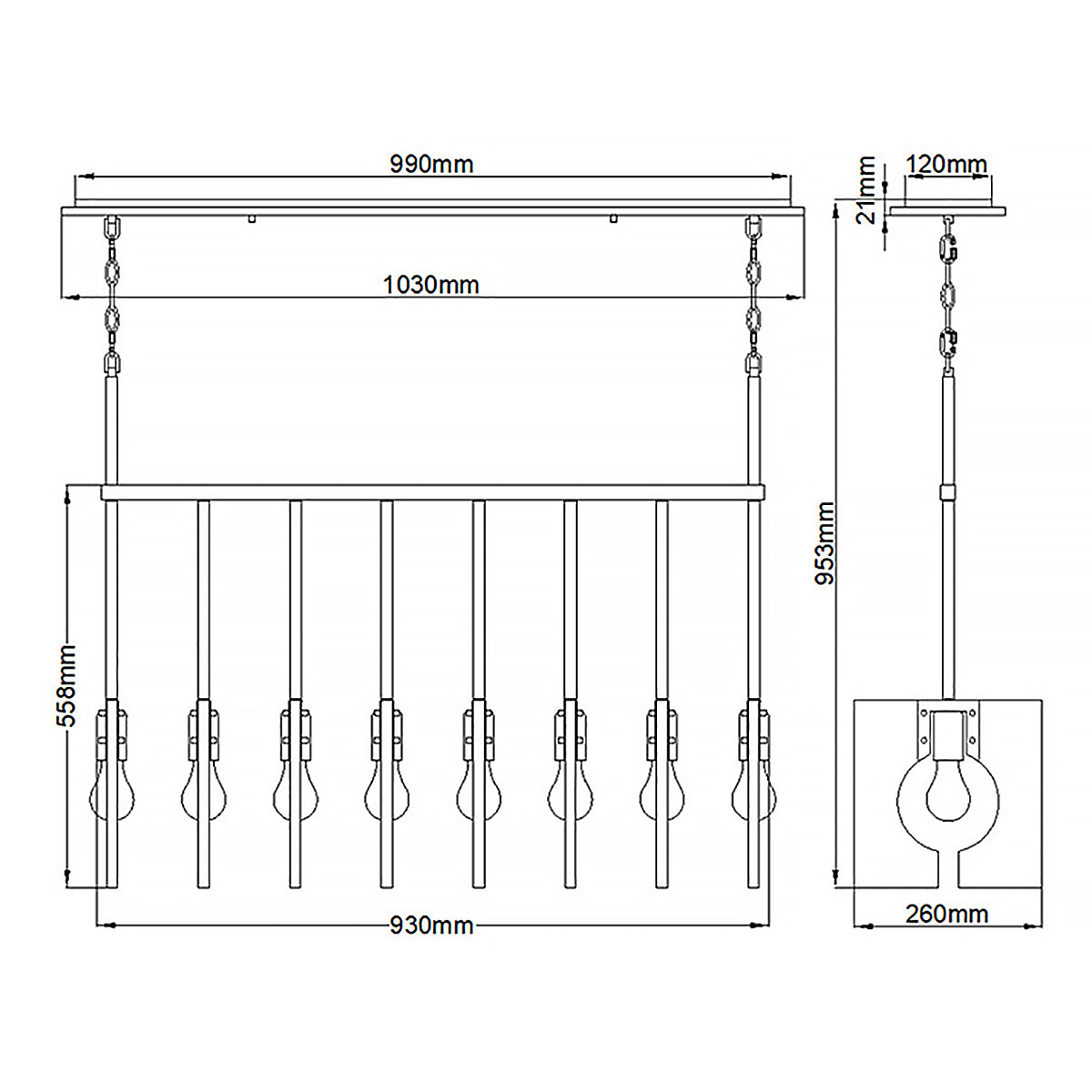 - Takes 8 x 60W E27 bulbs or LED equivalent bulbs - Edison-style bulbs are recommended to complete the look (not included)