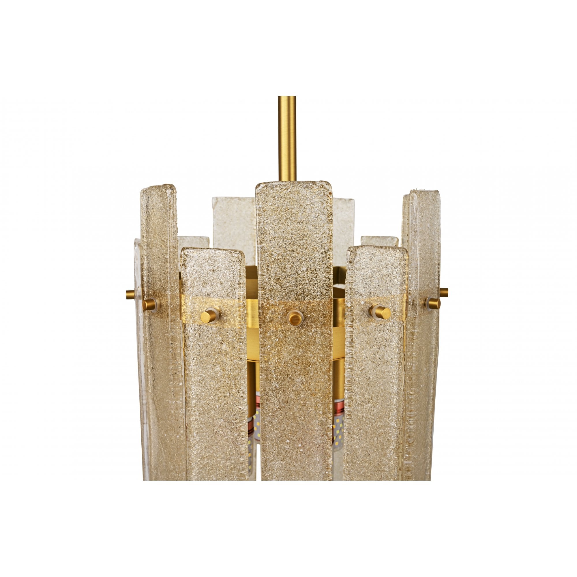 The Dalma Pendant Light pairs timeless style with modern elegance. Finished in rich antique brass, it features long hand blown textured glass that softly scatters light for a warm, ambient effect. Designed on a sleek fixed rod, the Dalma offers a clean, structured silhouette perfect for kitchen islands or bedsides, Its classic finish and refined detailing make it ideal for those seeking antique brass pendant lighting with a contemporary edge.