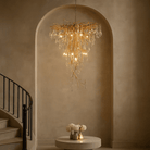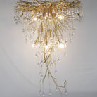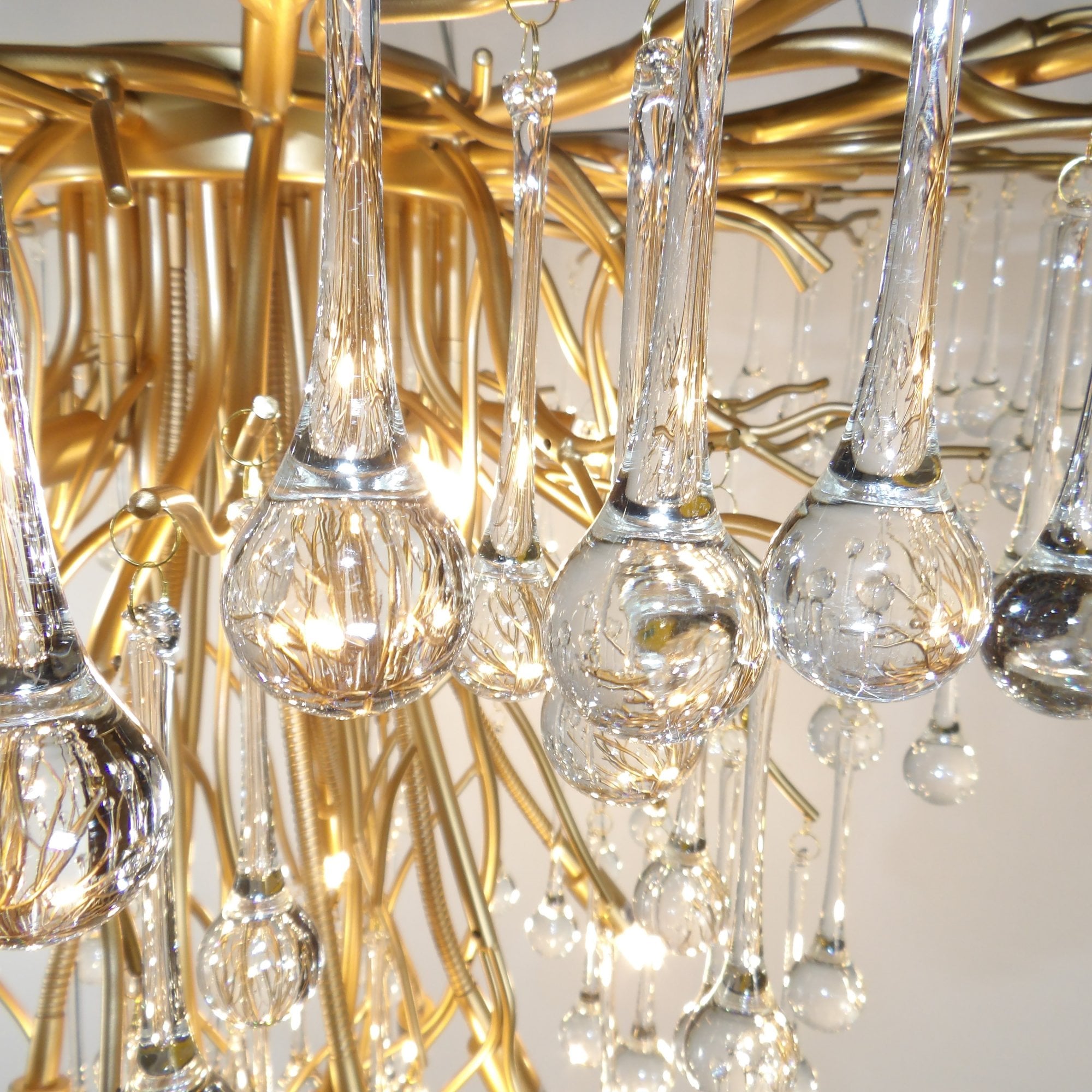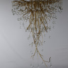 Elegant gold pendant light featuring a unique branch design with glass accents. Adjustable height 1700–3700mm, body height 1200mm, diameter 700mm. Gold finish, 13 x G9 5W bulbs, 29kg – perfect for stairwells and statement spaces.
