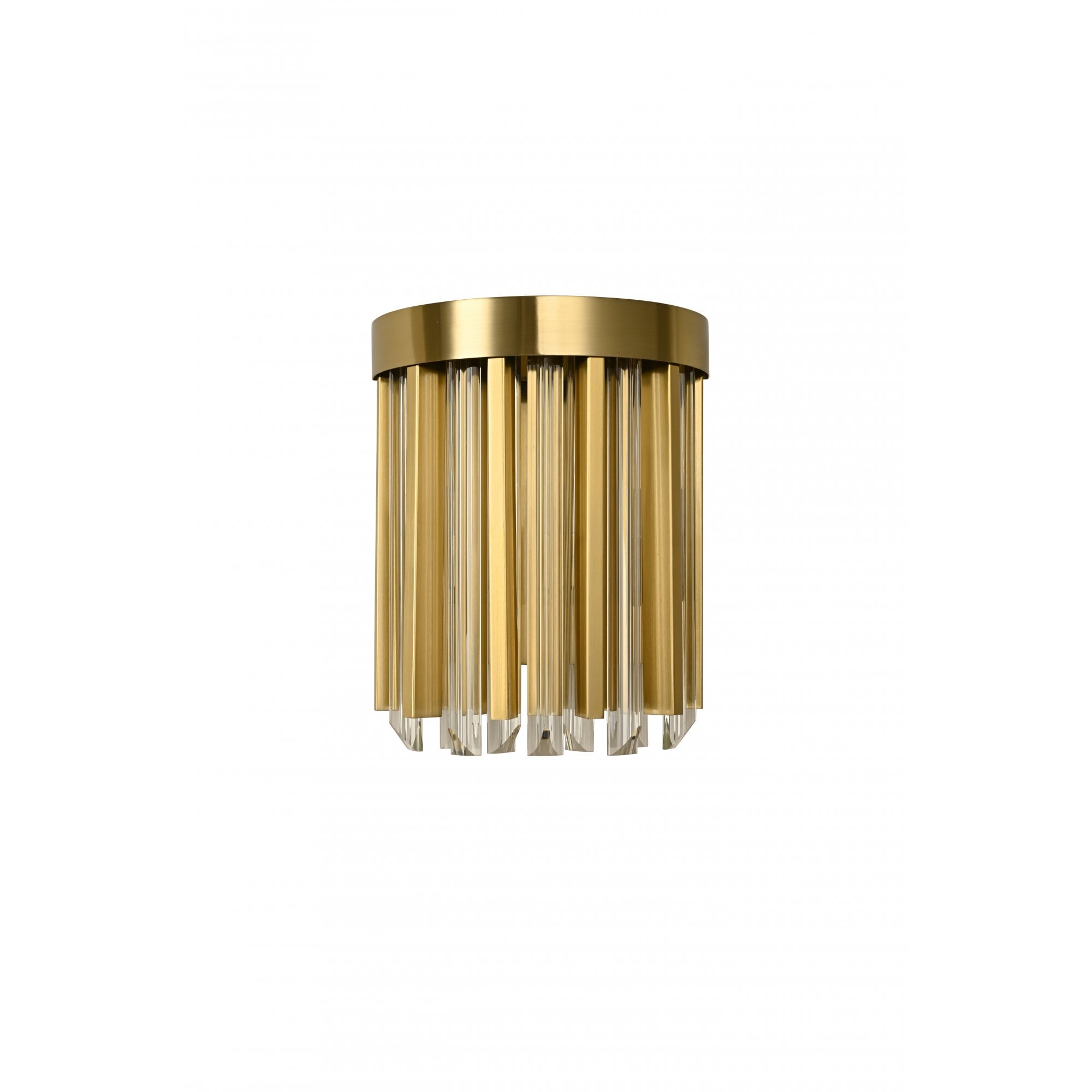 Interspersed among the metal framework are delicate tri-cut glass tubes, which bring a sense of delicacy and lightness to the wall bracket. These clear glass tri-cut tubes allowing the light to pass through and create a soft, warm ambiance when the wall light is illuminated.