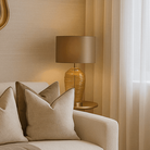 Hurricane Champagne Glass Table Lamp & Taupe Shade