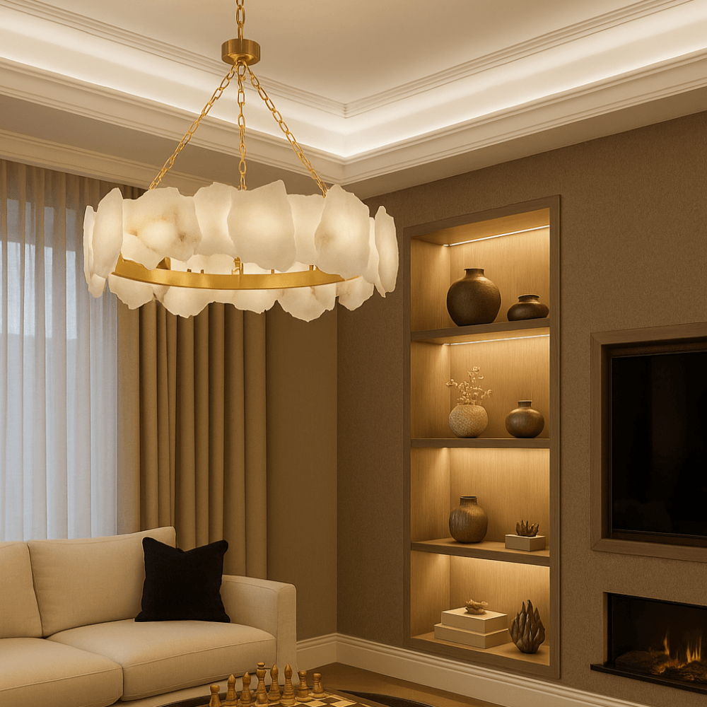 Due to the nature of the materials used the alabaster decoration on this chandelier may differ in shape, size, texture and colour - This is part of the products unique charm as no two pieces are alike.
