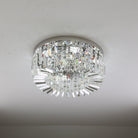 The Kora small round flush light is finished in a polished chrome finish, features crystals that sparkle in the light and is perfect for low ceilings. This flush light has a glamourous look and is suited to an interior where a statement light is required.