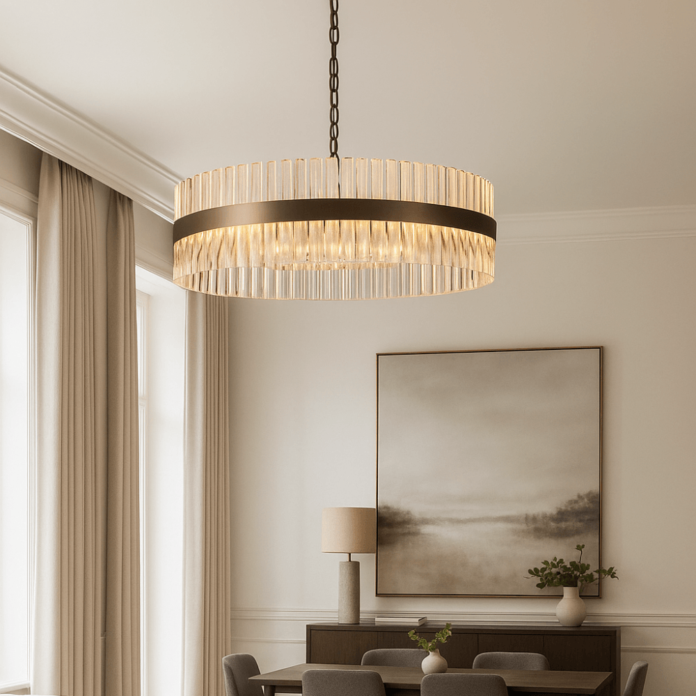 The London pendant light is a stunning lighting fixture that combines the rich allure of Bronze with the contemporary elegance of Lucite tubes. With a diameter of 60cm, it presents a substantial size that demands attention and makes a bold statement in any space.