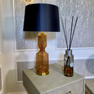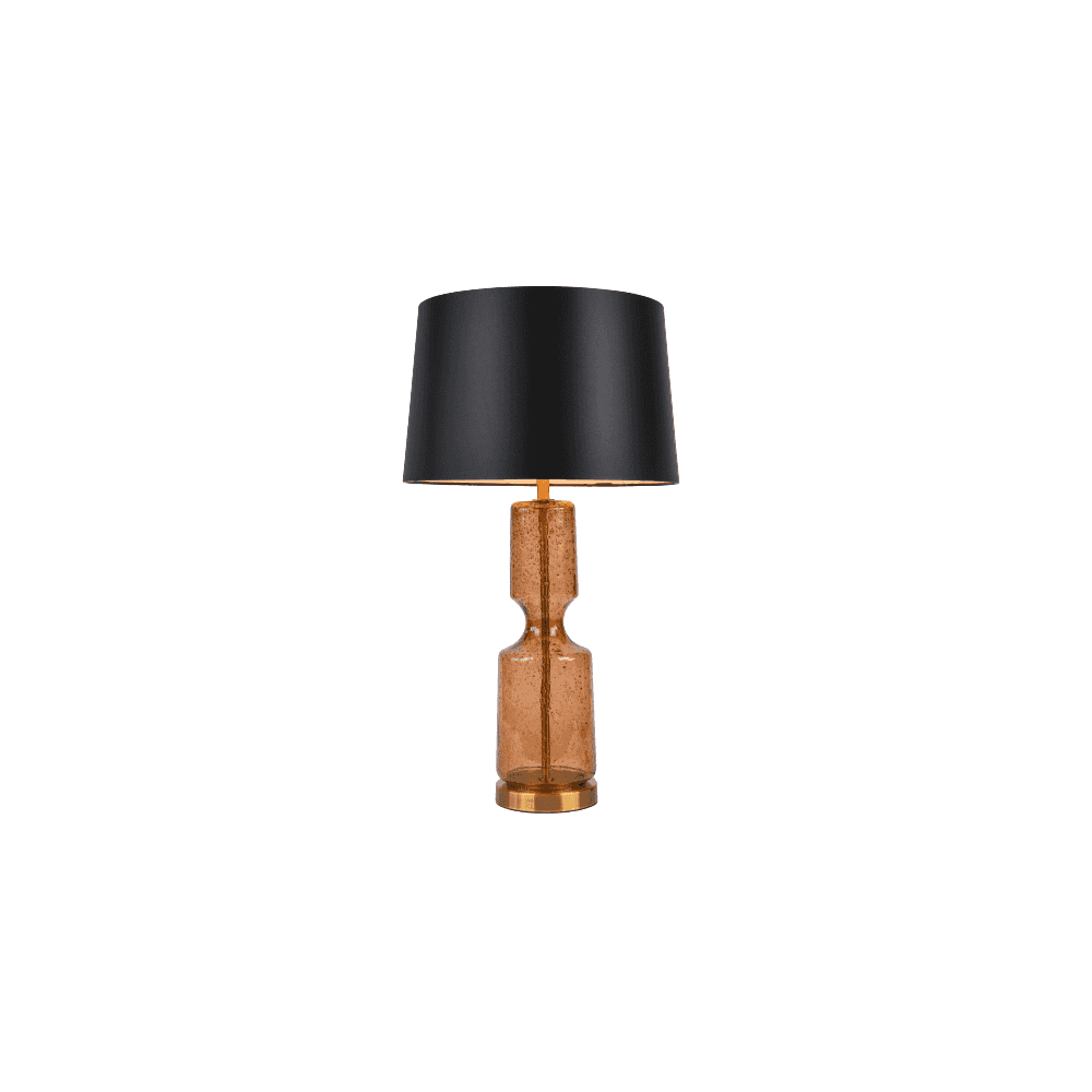 This hand blown table lamp is finished with a hand blown glass in Amber with a natural "bubble" blown detail within the glass. The complimenting Chocolate Brown Satin shade balances out the warm tones of this gorgeous table lamp.