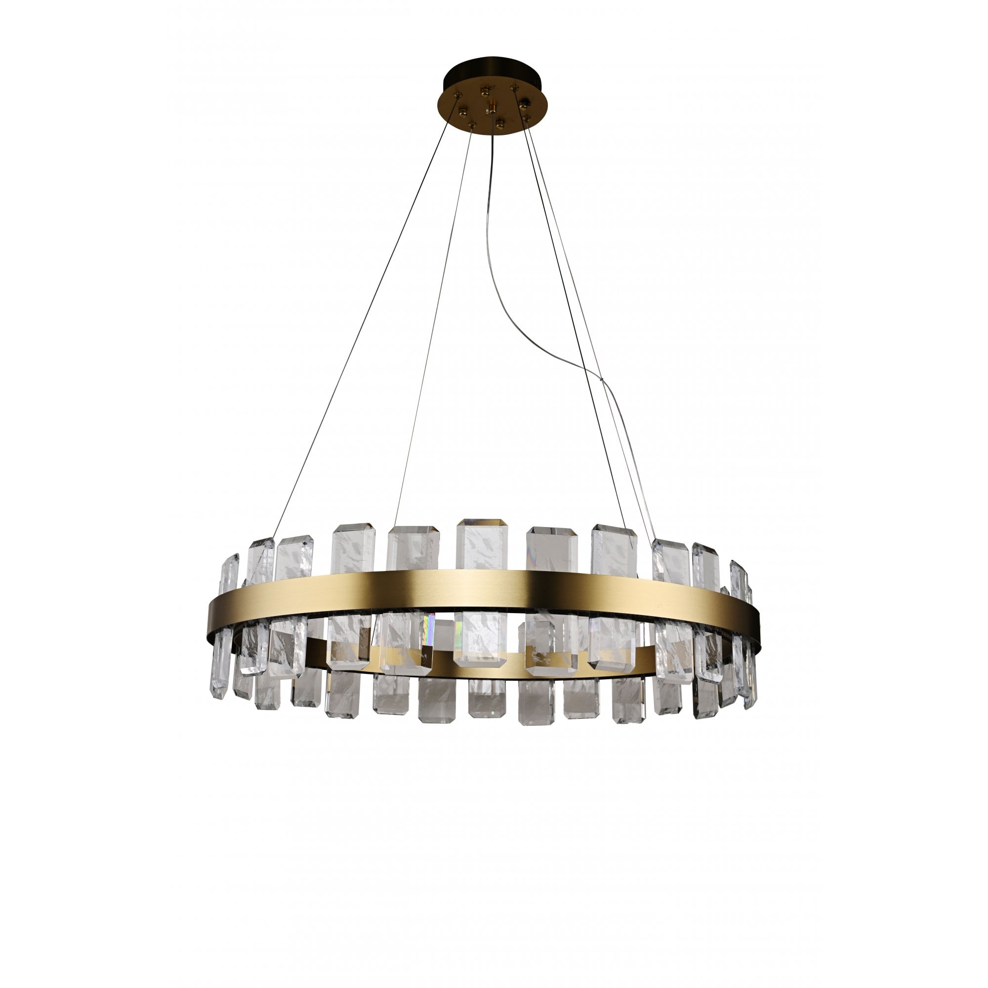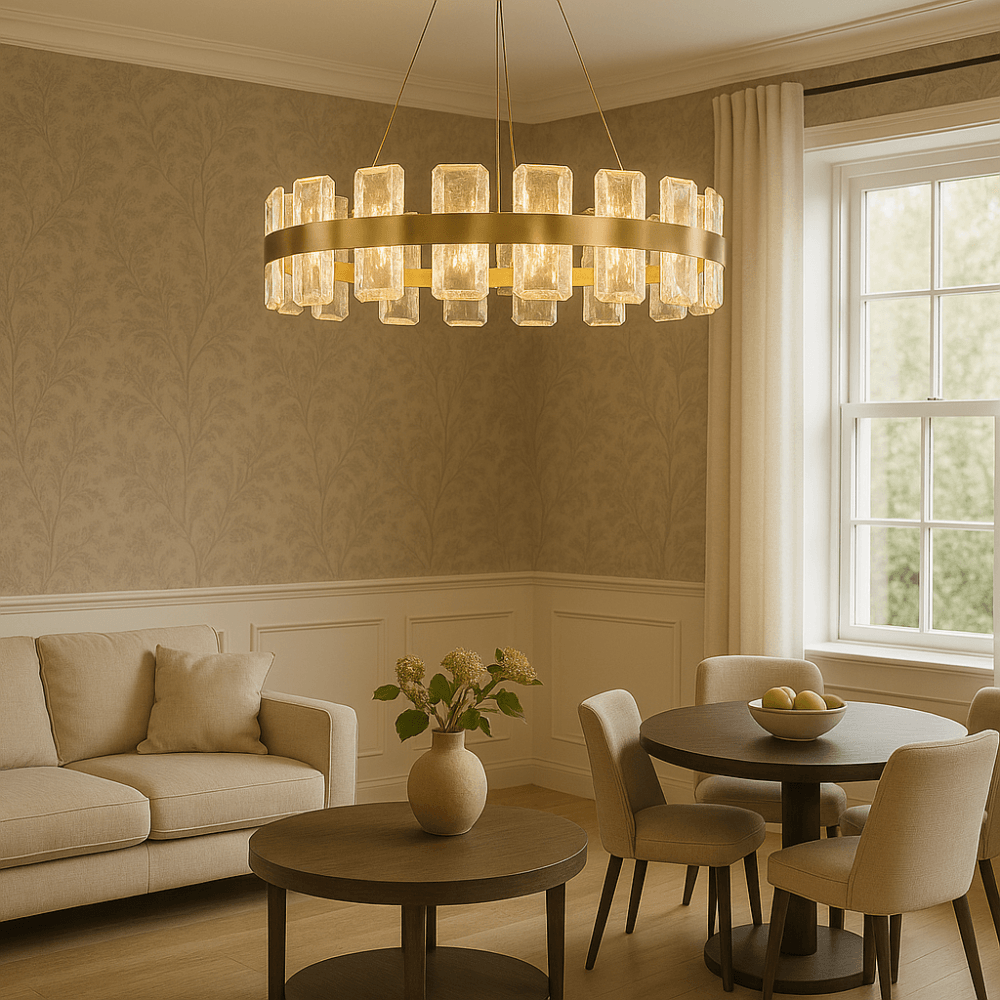 Elevate your space with the Rocco Gold Pendant Light, a luxurious lighting feature combining a warm 3000K LED glow with a sleek, modern design. Finished in elegant brushed gold metal, this pendant adds instant sophistication to any interior. The faceted glass details create stunning light refractions, enhancing the warm tone and adding depth to your décor. Perfect for bedrooms, living rooms, dining areas, or hallways, the Rocco pendant brings ambient lighting and high-end style to your home. Ideal for those seeking modern gold pendant lighting with a warm, inviting feel.