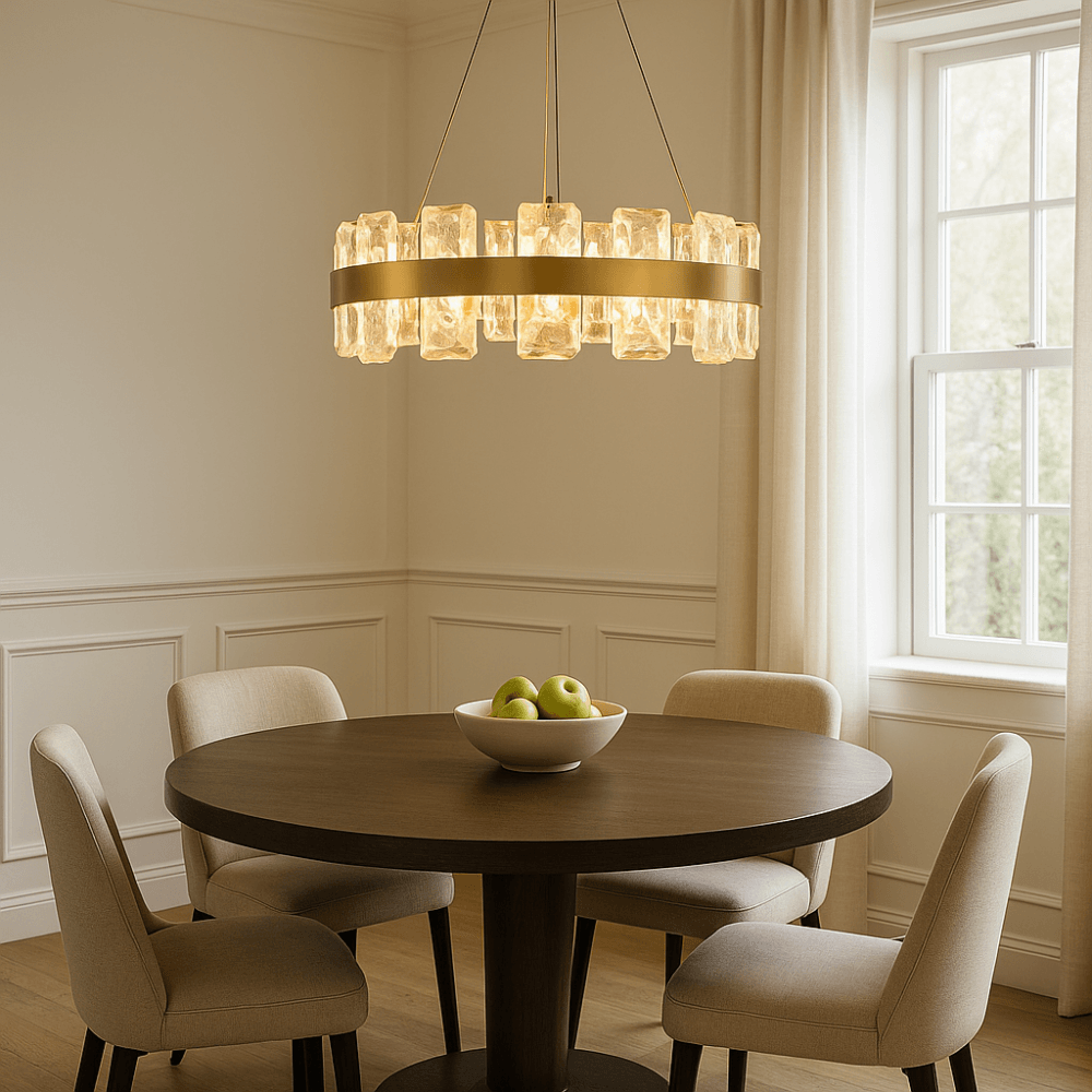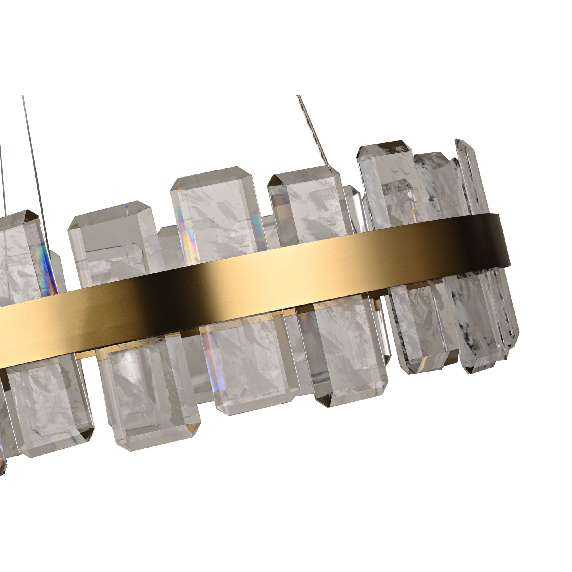 Elevate your space with the Rocco Gold Pendant Light, a luxurious lighting feature combining a warm 3000K LED glow with a sleek, modern design. Finished in elegant brushed gold metal, this pendant adds instant sophistication to any interior. The faceted glass details create stunning light refractions, enhancing the warm tone and adding depth to your décor. Perfect for bedrooms, living rooms, dining areas, or hallways, the Rocco pendant brings ambient lighting and high-end style to your home. Ideal for those seeking modern gold pendant lighting with a warm, inviting feel.