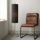 The Angelica floor lamp has antique brass metalwork and a black fabric cylindrical shade. It also has an inline on/off foot switch and a 2 metre black fabric flex to plug.