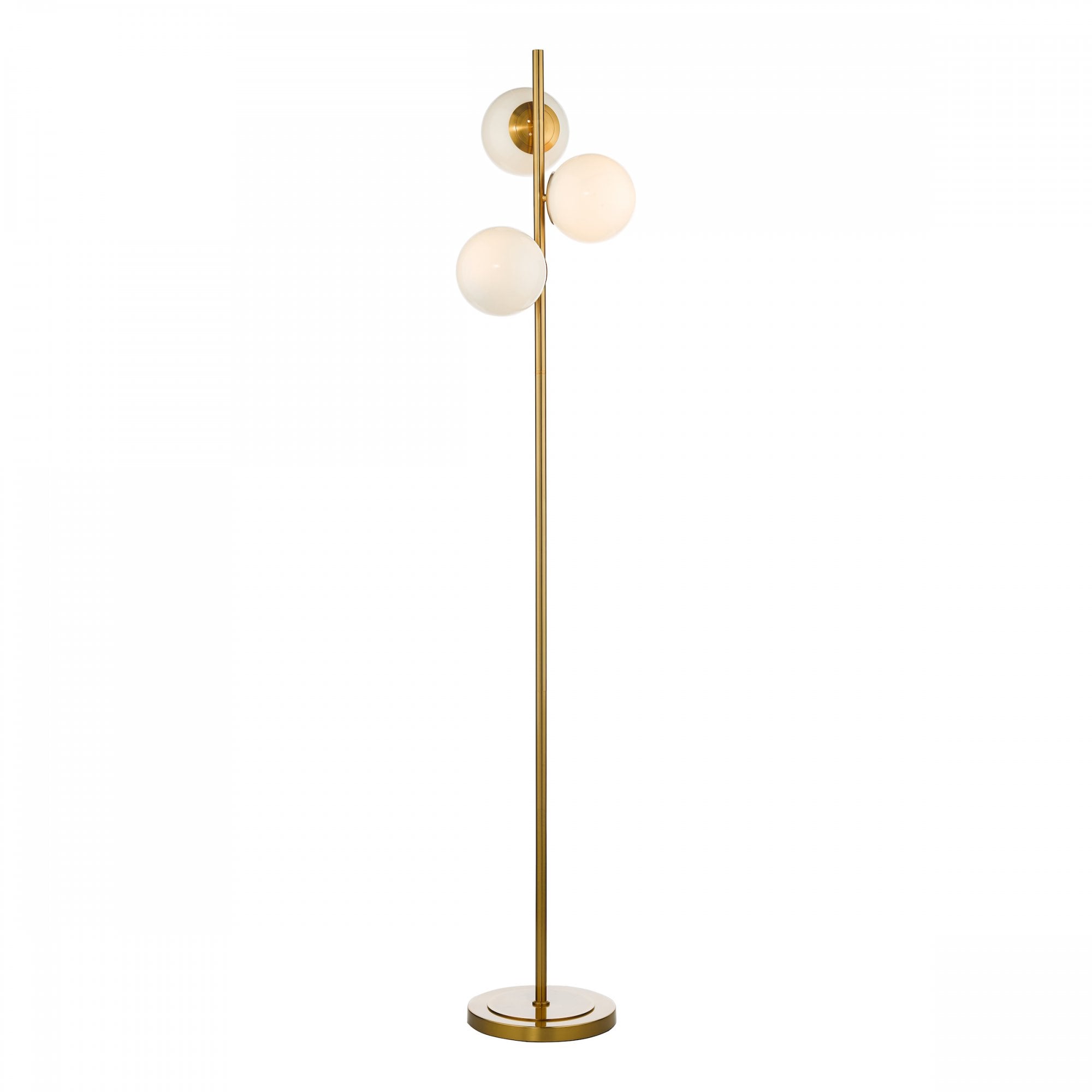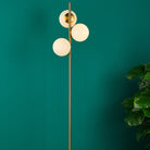 Bombazine Natural Brass 3 Light Floor Light with Opal Glass Shades