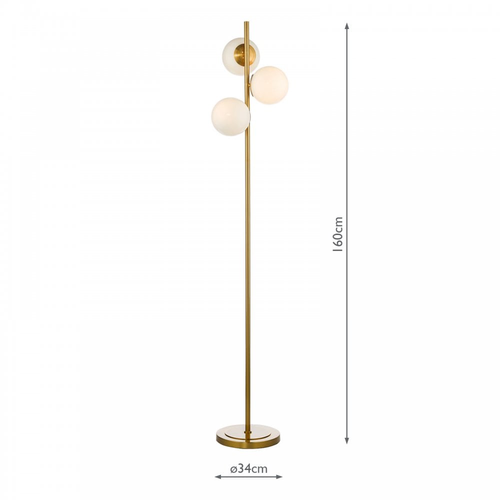 • Dar Lighting BOM4935 Bombazine Natural Brass 3 Light Floor Light with Opal Glass Shades