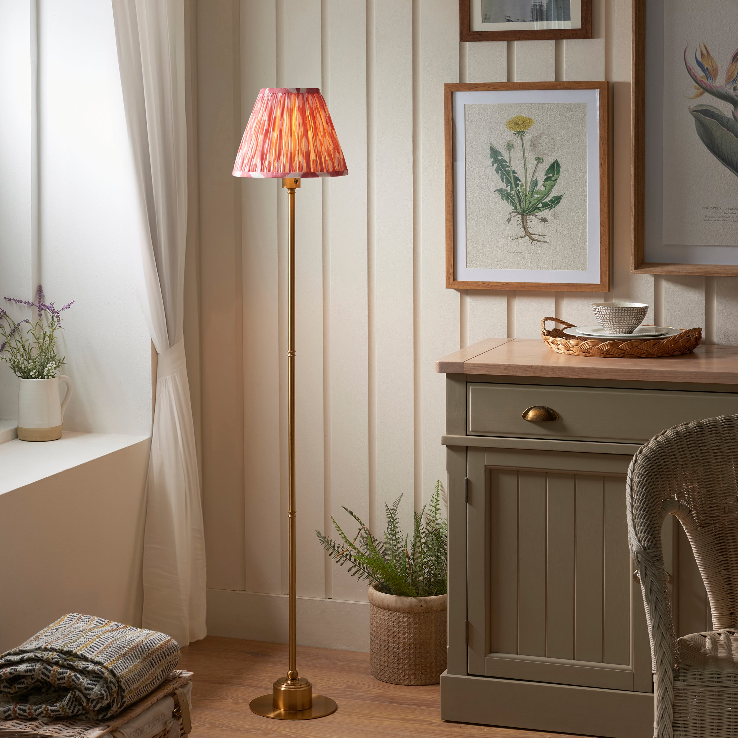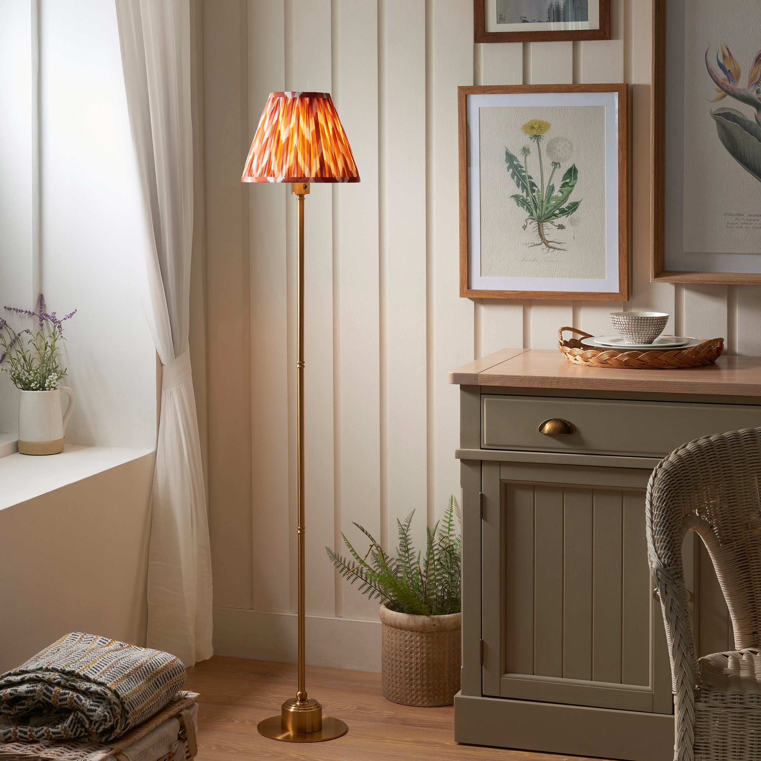 Not tied down with the need for a power cable, this fully portable, battery operated, rechargeable 3 stage touch dimmer floor light enables you to select your own level of light. Classic in style and finished in aged brass making it easy to place around your home. Turns on for low light then touch controlled to increase light level to medium then bright, making it the perfect bedroom addition. Taking just 5.5 hours to fully charge and giving up to 36 hours of continuous light. Be creative! Place anywhere where other lights cannot reach, a totally versatile addition to your home. Pair with one of our 25cm or 30cm decorative shades for the perfect timeless style.