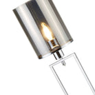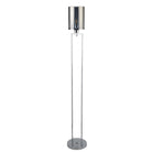 This charming floor lamp will act as a centre piece for your living room. The impressive item consists of a slender chrome 2 part body topped with a smoked glass shade. An additional touch of black braided cable adds a contemporary element to the overall aesthetic.