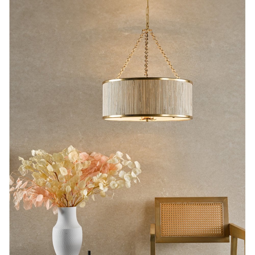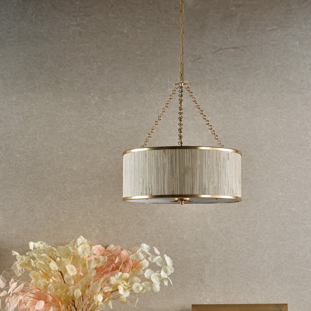 The Fenella 3 Light Floor Lamp; a stunning lighting option that exudes elegance and sophistication. This floor lamp features a Gold Leaf finish, adding a touch of opulence and luxury to any space. The seagrass drum shade beautifully complements the gold finish, providing a natural and organic element to the design. The inclusion of a glass diffuser ensures a soft and diffused light, creating a warm and inviting atmosphere. Whether placed in the living room, bedroom, or entryway, the Fenella Floor Lamp becomes an eye-catching centerpiece, elevating the overall aesthetic of your decor.
