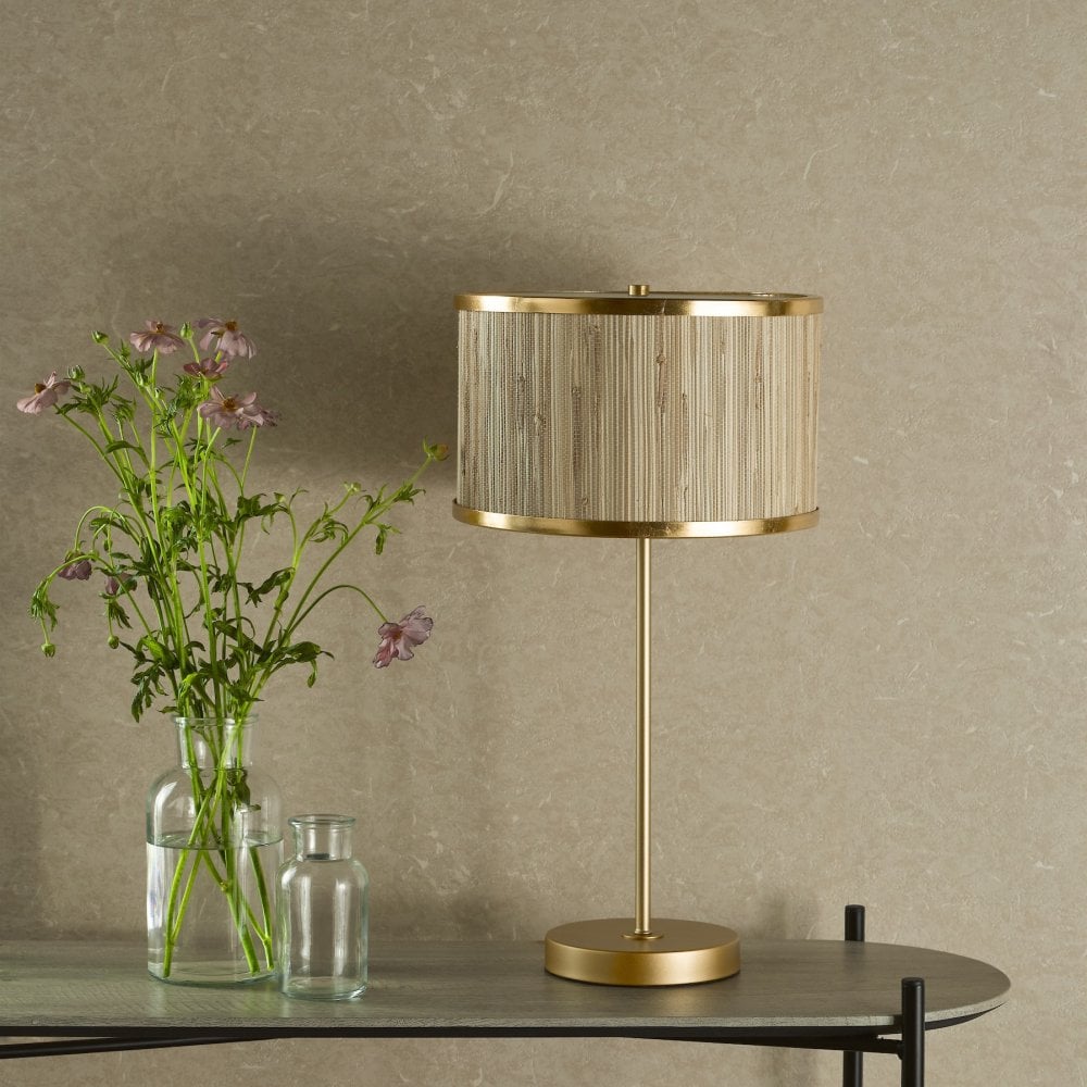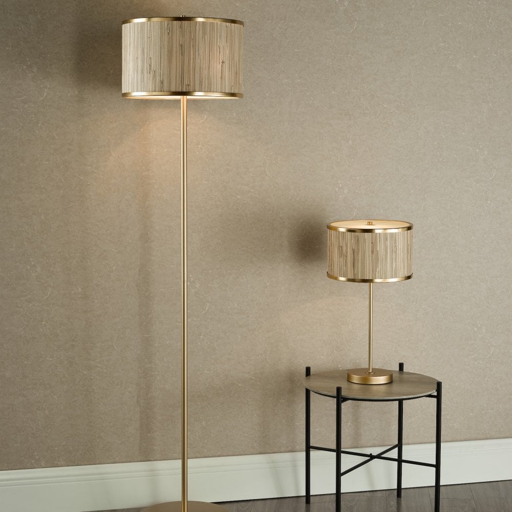 Fenella 3 Light Floor Lamp Gold Leaf and Seagrass