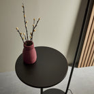 A contemporary mix of design and utility, with a strong silhouette form. This satin black painted floor light features a usable table or shelf for placing everyday objects and an opal glass shade, perfect for a busy modern lifestyle.