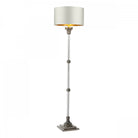 A classic and imposing floor lamp with a single reeded column of ribbed glass, finished with polished pewter resin detailing in the Corinthian style. Shade sold separately.