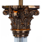 A classic and imposing floor lamp with three reeded columns of ribbed glass, finished with polished bronze resin detailing in the Corinthian style.