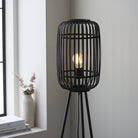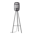 A simple and stylish floor light inspired by nature, with sustainably sourced dark bamboo cage, creating a soft warm light. Finished with matt black paint and dark wood detailing.