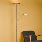 The Shelby LED Mother and Child is a wonderfully versatile floor lamp. Featuring a bright dimmable uplighter which can be angled to direct light against a wall or further into the room. An extra adjustable reading light is installed that can be controlled independently. Both light sources used highly efficient LED, which is also cool to the touch for ultimate safety. Finished in satin nickel, also available in antique brass.