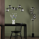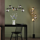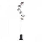 The Spiral 6 Light Matt Black Floor Lamp with Smoked and Clear Glass Shades features unique oversized asymmetric glass shades which are half smoked and half clear with opposing radial and linear ribbing. The result is a contemporary lighting fixture with an eye-catching yet understated look. The Spiral floor lamp features a black cable with a foot-activated switch, allowing easy operation of the light. Whether used in a reading nook or along a hallway, the Spiral floor lamp adds a touch of modern style to your space.