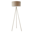 A simple yet stylish floor light in a tripod design with a matt nickel finish, and teamed with a grey linen effect shade. Compatible with LED lamp.