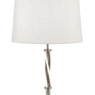 Floor lamp is great for a contemporary setting. The swirl chrome base features a tasteful cream shade which creates a warm and subtle look in your home interior. Place with our matching table lamp.