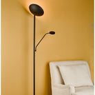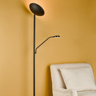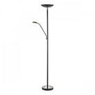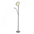 The modern Victor LED Mother and Child is a wonderfully versatile floor lamp. Featuring a bright dimmable uplighter which can be angled to direct light against a wall or further into the room. An extra adjustable reading light is installed that can be controlled independently. Both light sources used highly efficient LED, which is also cool to the touch for ultimate safety. Finished in satin black with brushed nickel accents.