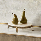 With its low, sculptural form and gently rippled marble surface, our Belvedere Aged Gold oval platter is designed for moments of understated luxury. Carved from White Banswara marble, each marble surface carries subtle tonal shifts and natural veining that make it food safe and one of a kind. Resting on an antique gold base, the single tier stand offers quiet elegance for serving or styling. Ideal for interiors where detail, materiality and restraint define the mood. Both single and two tier stands are available.