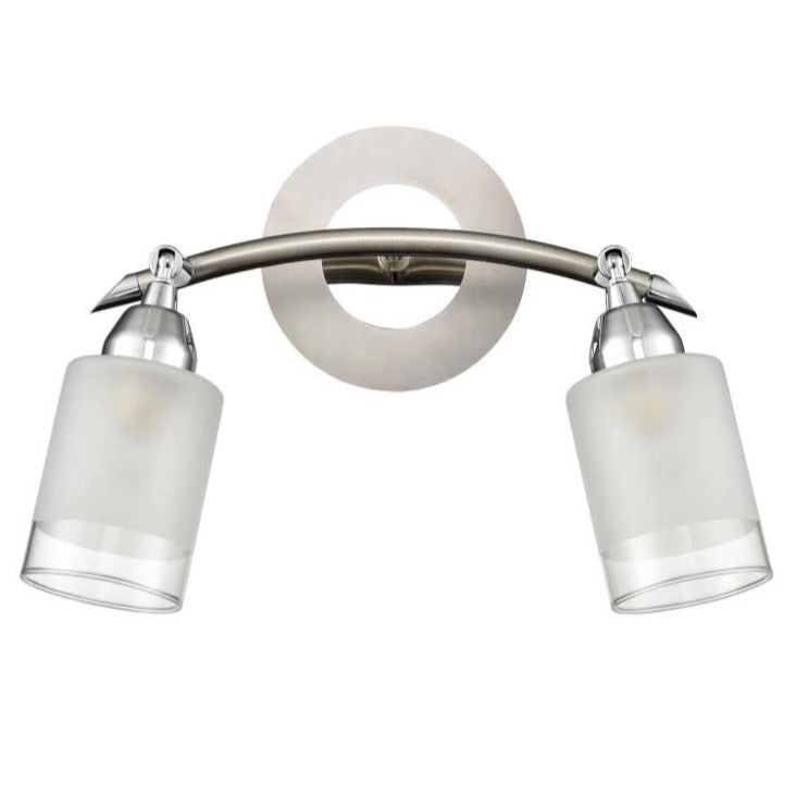 in chrome/satin nickel finish with a double switch and clear edged acid glasses.