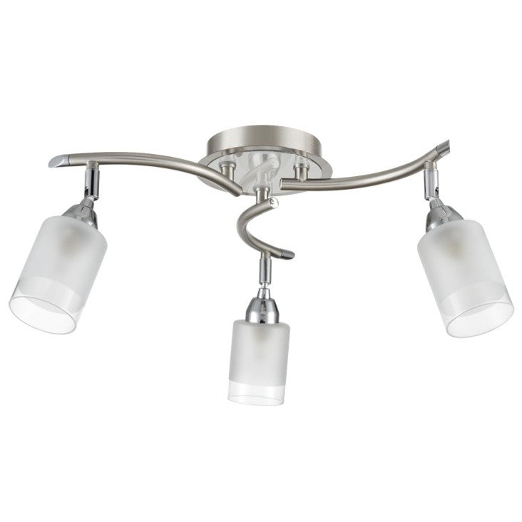 in chrome/satin nickel finish with clear edged acid glasses. LED G9 lamps should be used. Suitability for dimming will depend both on the lamp and switch used.