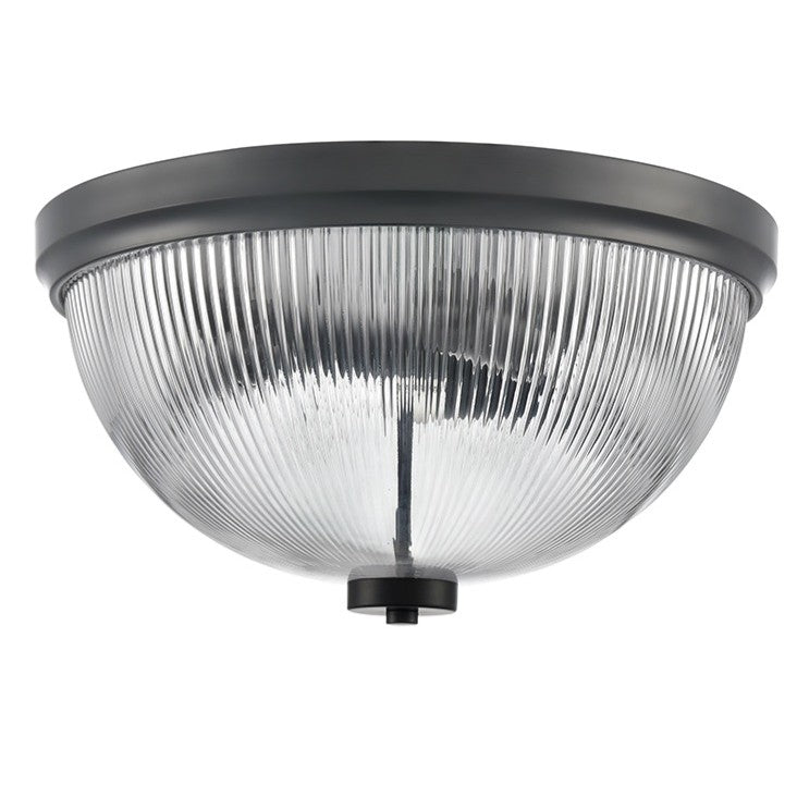 Large matt black finish flush ceiling fitting with clear ribbed glass