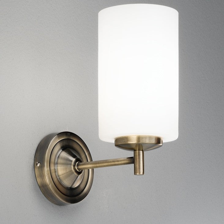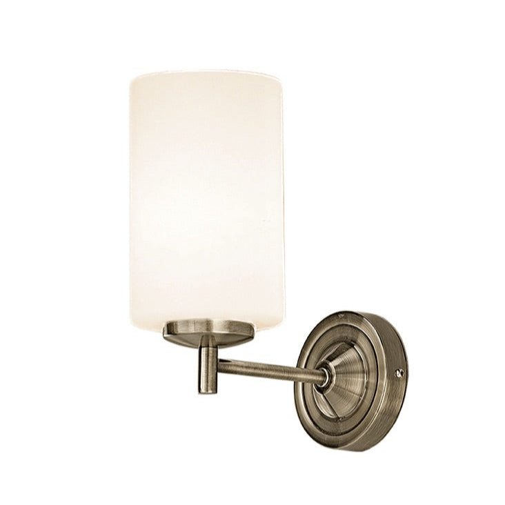 Bronze finish 1 light wall bracket with matt opal cylinder glass.