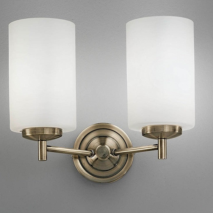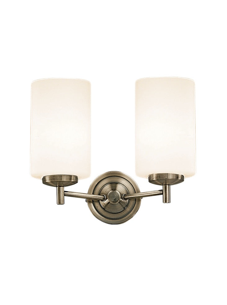 Bronze finish 2 light wall bracket with matt opal cylinder glasses.