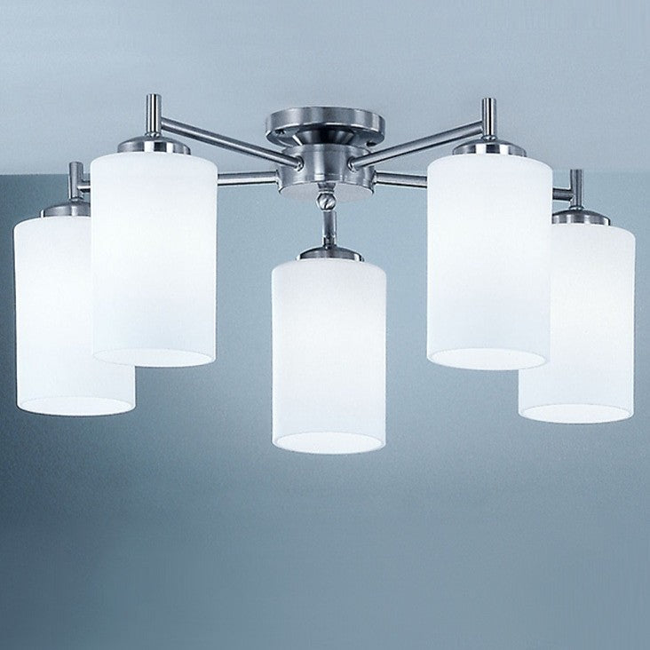 Satin nickel finish 5 light flush fitting with opal cylinder glasses