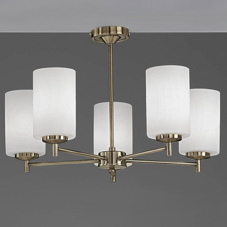 Bronze finish 5 light semi flush fitting (up) with matt opal cylinder glasses.