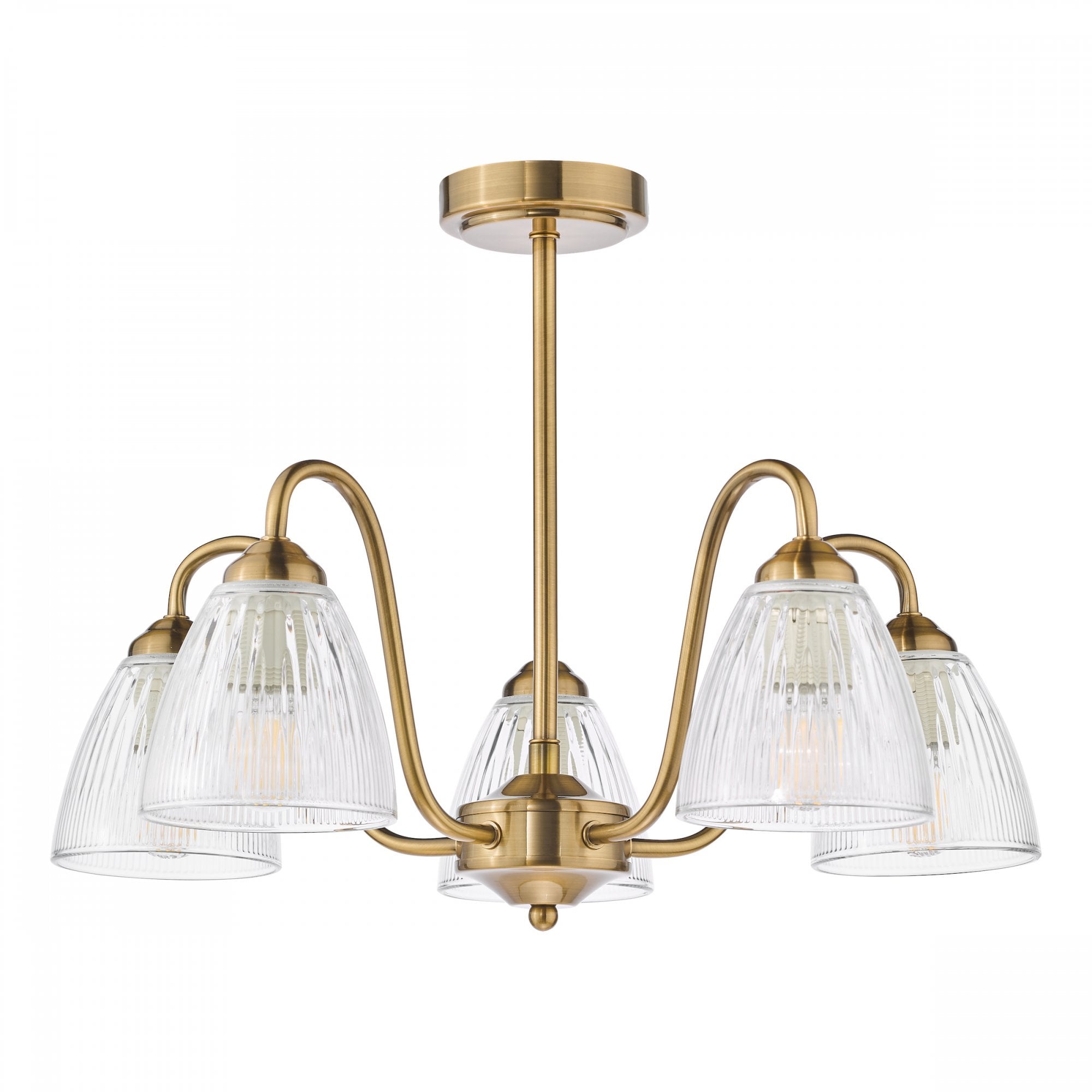 Glynis Brushed Bronze & Ribbed Glass 5 Light Semi-Flush