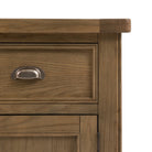 Discover ultimate storage with this generously sized sideboard. Featuring three spacious drawers and three cupboards, this sideboard offers exceptional storage for kitchens, living spaces and hallways. The warm wood finish of the solid oak & veneers is full of natural grain detail, perfectly complemented by classic metal handles, creating a blend of timeless style and substance.