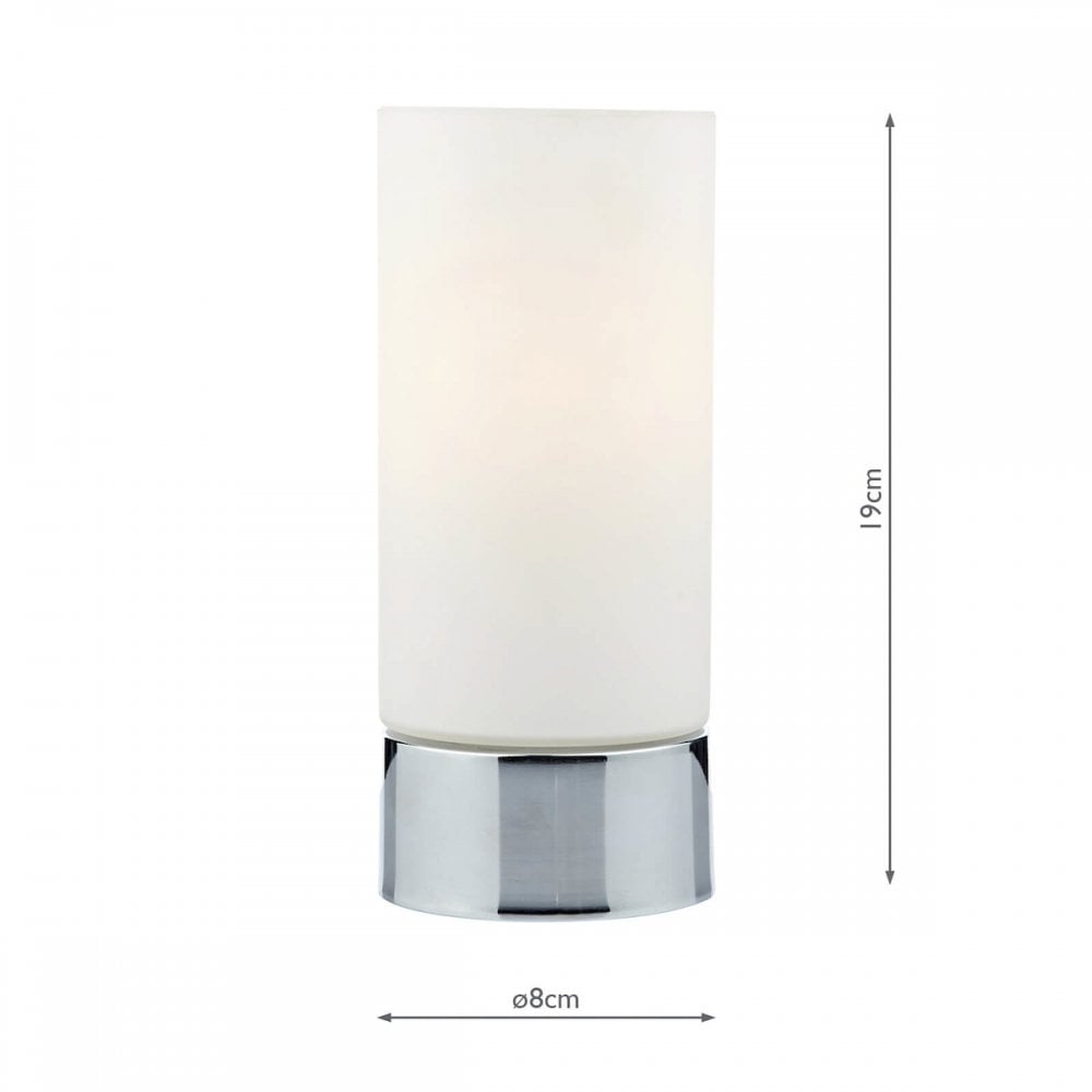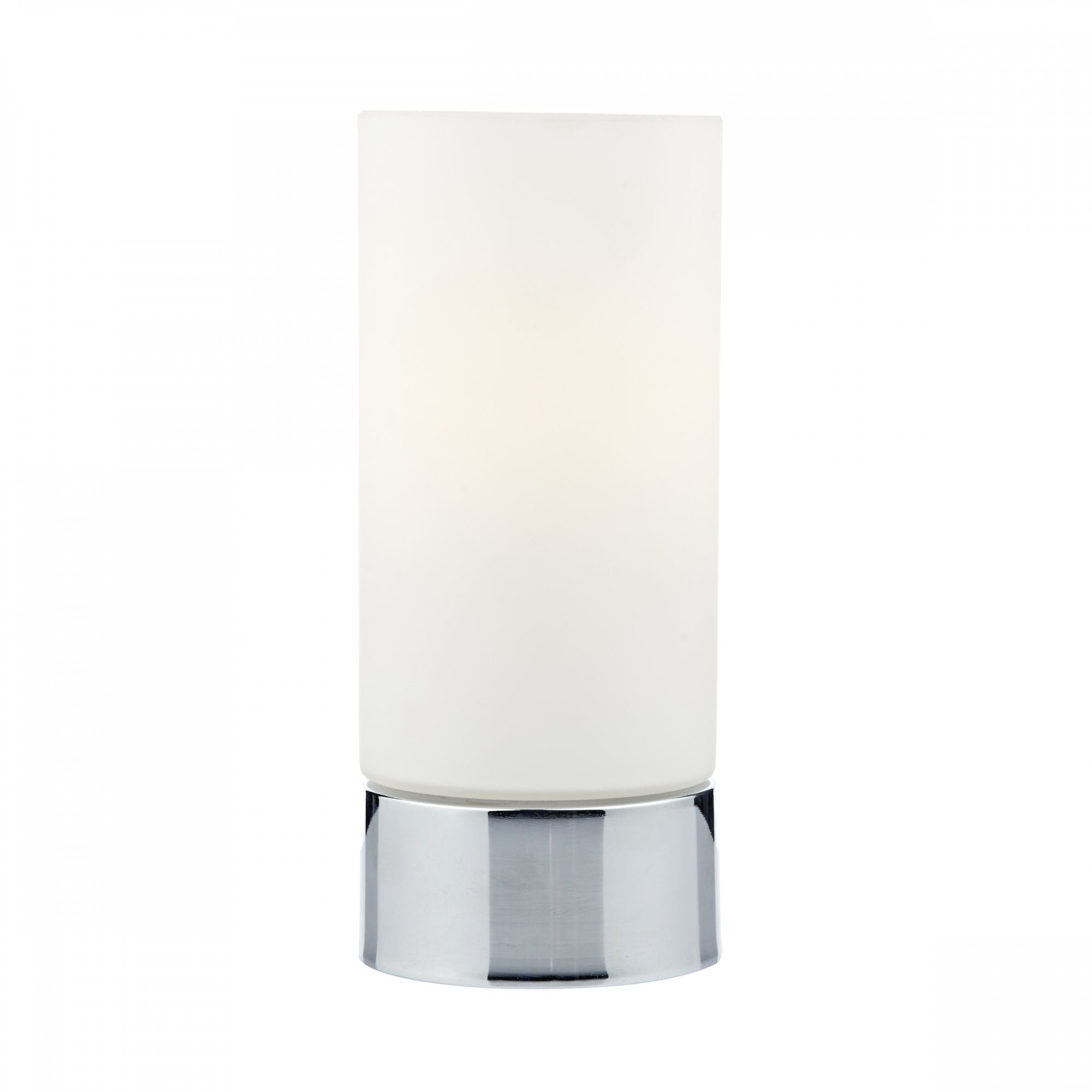 The Jot Touch Table Lamp features a cylindrical opal glass shade resting on a polished chrome base. It's 3 stage touch operated, which makes it perfect as an occasional table lamp where space is limited.