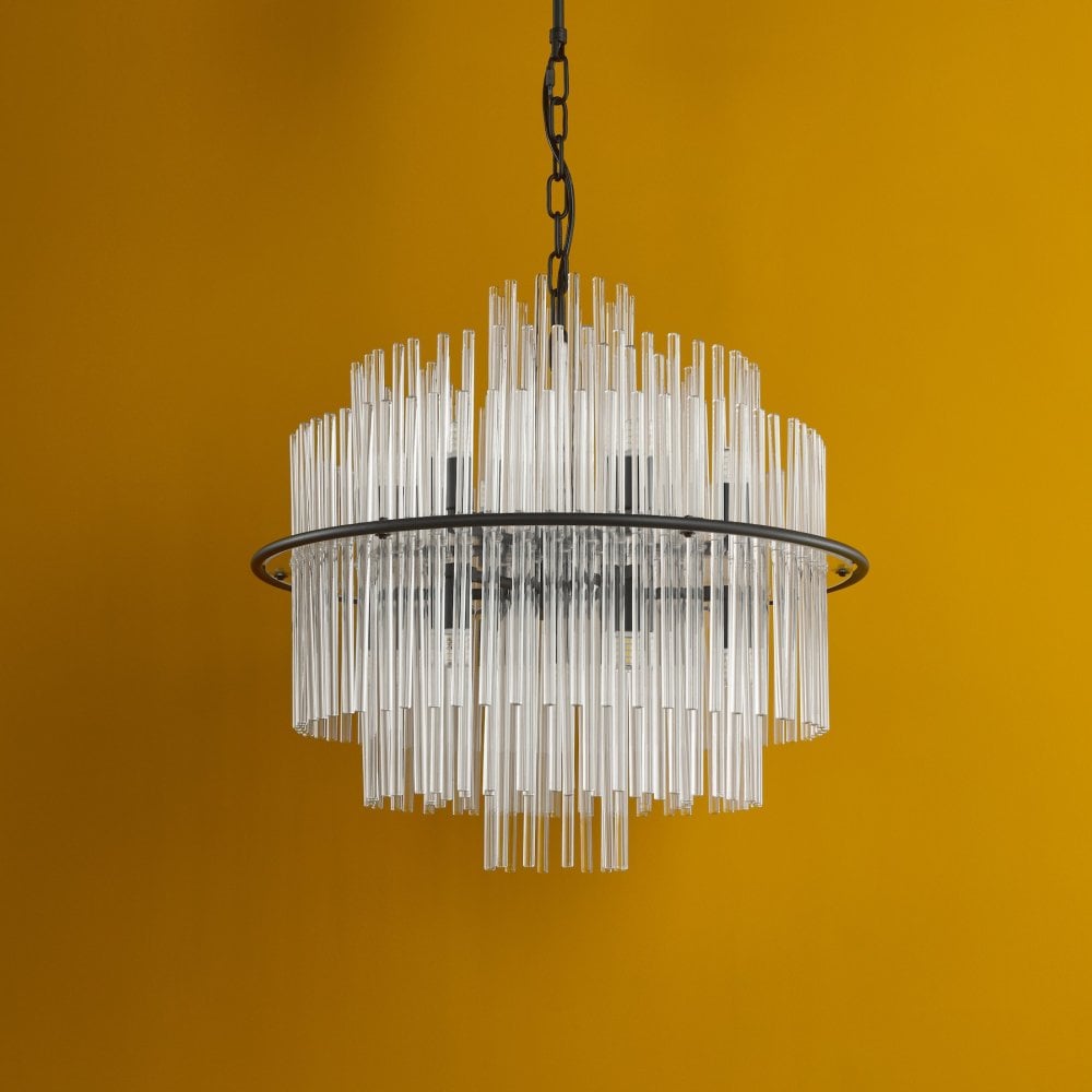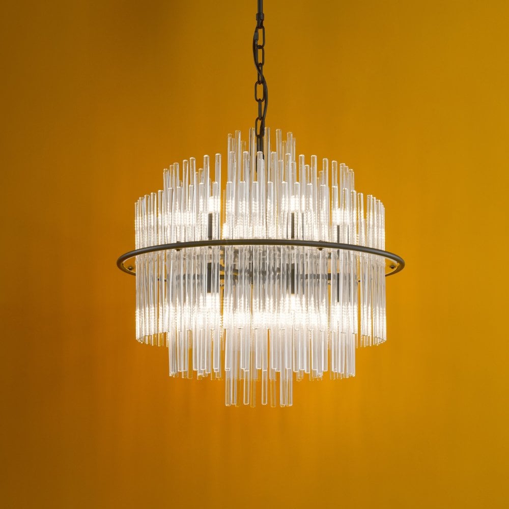Lukas 13 Light Pendant Satin Black and Glass