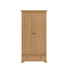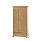 Organise in style with this elegant wooden wardrobe. Featuring a spacious double-door cupboard and a generous lower drawer, the wardrobe offers ample storage alongside timeless style and premium quality. The beautiful natural wood finish, crafted from oak solids and veneers, is full of subtle grain detail and natural beauty. Classic round handles bring a comforting, timeless elegance to the wardrobe, making it a perfect blend of style and practicality, just what any bedroom needs.