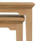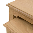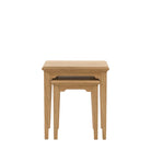 Maximise your living space with this charming wooden nest of tables. Perfect for smaller rooms or simply creating an adaptable living space, these two tables can be used together as a multi-tiered stack or separately as a pair of convenient side tables. The warm, natural oak solid & veneers are full of subtle grains, adding a touch of rustic elegance and timeless style, offering both natural beauty and remarkable versatility.