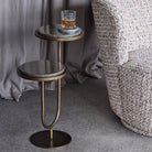 The Marco Accent Table in Royal Gold Italian Marble combines sculptural elegance with functional design. Its coordinating dual-tier marble tops rest on a burnished gold iron frame, offering the perfect surface for displaying decorative accents or serving drinks. The Italian Royal Gold marble features natural veining and tonal variations that subtly catch the light, giving each table its own distinctive character while staying true to its rich golden palette.