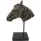 The Bay Horse Head Sculpture—Meticulously crafted with exceptional attention to detail, this sculpture captures the powerful form of a horse in an elegant pose. The intricate detailing highlights the graceful lines of its muscular face and flowing mane, showcasing both power and elegance. This piece rests proudly on a sleek matt black plinth and is cast from high-quality resin. Whether displayed on a mantel, shelf, or tabletop, it makes a bold statement. The Bay Horse collection includes single and nuzzling horse heads sculpture.