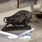 Crafted with a bronze finish, the Raging Bull sculpture adds a bold, dynamic presence to any sideboard or shelf. Its powerful design captures strength and movement, making it an ideal statement piece for sophisticated interiors. Durable and meticulously detailed, this sculpture enhances your space with both artistic flair and enduring quality.