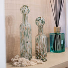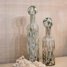 Introducing our Small Pistachio Speckle Bottle, perfect for adding a touch of style to any décor. Made with high-quality glass and a speckled design with gold accents, this small bottle pairs perfectly with our larger bottle for a cohesive look. Elevate your home décor with this elegant and versatile piece.