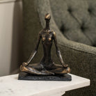 Yoga Pose Sculpture—A tranquil and graceful representation of inner peace and balance, this sculpture captures a woman in a serene yoga pose, possibly meditating. The smooth lines and gentle curves reflect both strength and serenity, embodying the deep connection between mind and body. Cast in high-quality resin and finished with a rich antique bronze coating, this sculpture serves as a striking focal point, celebrating the peacefulness and discipline of yoga and meditation.